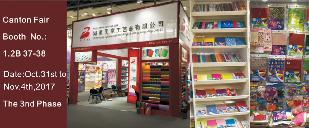 This is China ArtsCreating. Our company will attend to 2017 Fall Canton Fair 3 phase. We hereby sincerely invite you and your company representatives to visit our booth. 2017 Fall Canton Fair 3 phase Booth Number: 1.2B 37-38 Date: 31st, Oct. --- 4th, Nov,2017. We are a professional manufacturer and exporter which established in 1978 . Our main products including EVA foam, Various of paper, adhesive book cover , felt , office and school stationery and home decorations etc . We can manufacture as your requirements and can help you design the products which fit your market. Could you please tell us if you will attend the Canton Fair ? We really look forward to meet you at the Canton Fair, Hope we can establish long-term business relations with your company in future.
